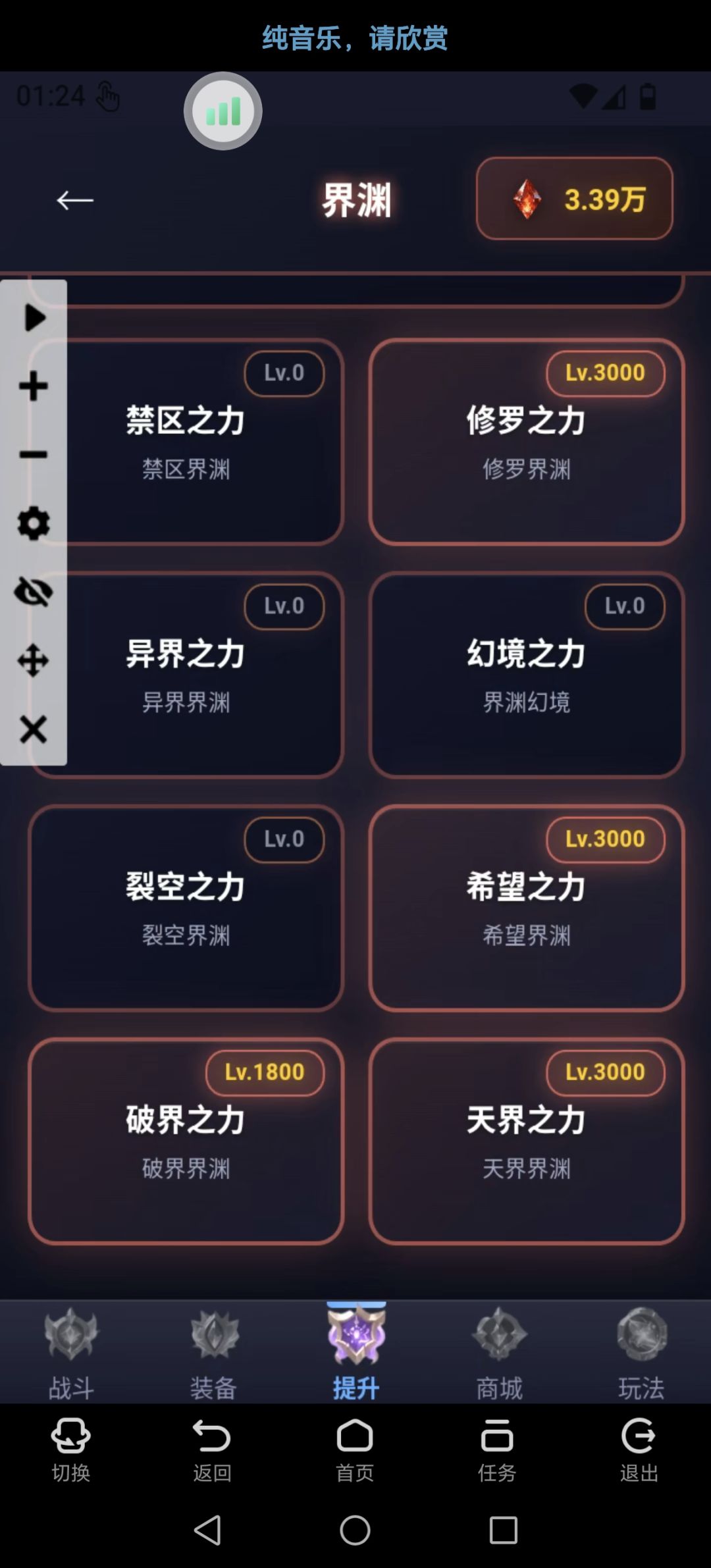 破妄7级,攻击宠圣5,强化4.7左右,攻击宠王6+10倍木契。界渊调整一下(石头不够就少点破界,或幻境)看图6