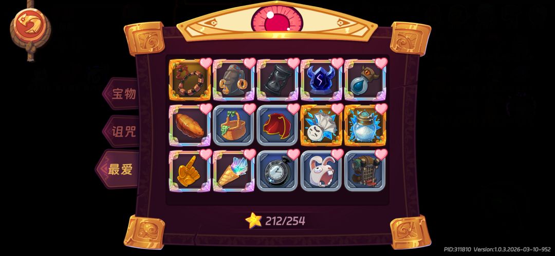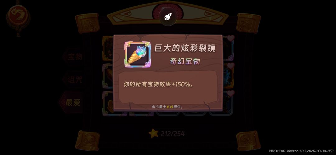 最后就是宝物了,太啰嗦了不想写了,就在图中的那几个里,自己对应着看吧,主要就是“雨天娃娃”+“罐装粗盐”+“巨大泪滴”+“巨大虫蛹”+“炫彩裂境”+“潮湿羽扇”+“三围同等的晶石”。⚠️⚠️⚠️注意,伤害达到上限后,可以放弃雨天娃娃+罐子粗盐+潮湿羽扇,不缺这点冰冻层数。