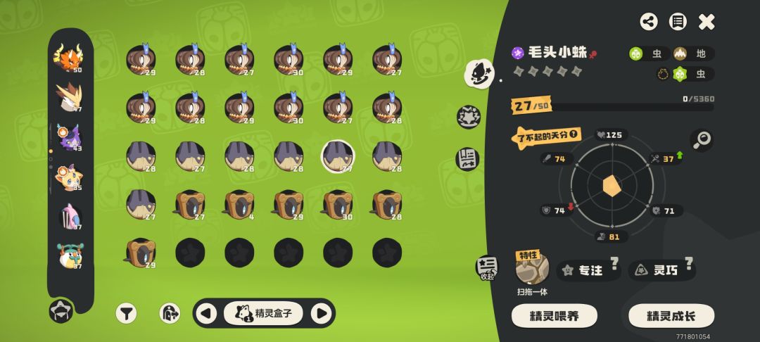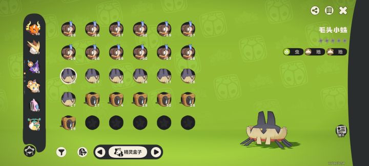 帖主全用高级球抓,触发进入战斗直接抓,最终战果:一只了不起的毛头小蛛,剩下全放生了……