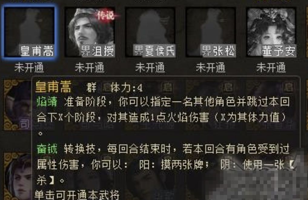 1.这个技能才是皇甫嵩的主技能,为了持续过牌,必须要留够【杀】,不然很容易卡在阴状态。吴匡可以只点击技能而不发动效果,但是皇甫嵩无法在没杀的时候出发转换。