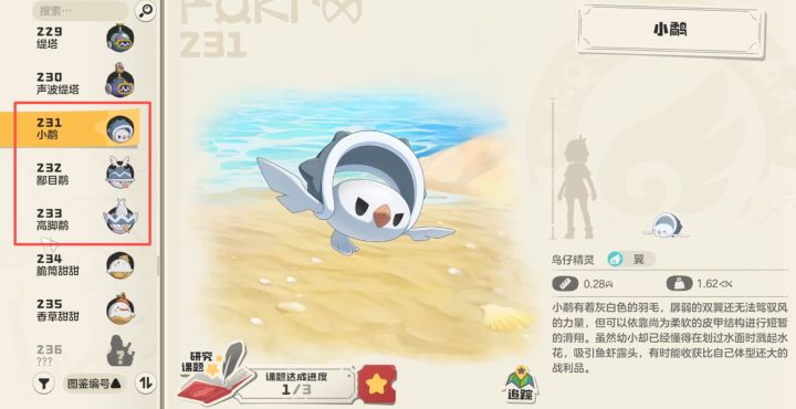小鹬16级进化到鄙目鹬,鄙目鹬32级进化到高脚鹬,点位附近都可到抓三种形态,图鉴标号231-233