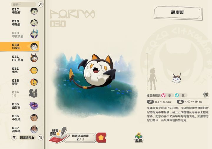 获取方式:与魔力之源交互,将时间调整至夜晚,到该点位进行抓取。 1阶段进化条件:40级。