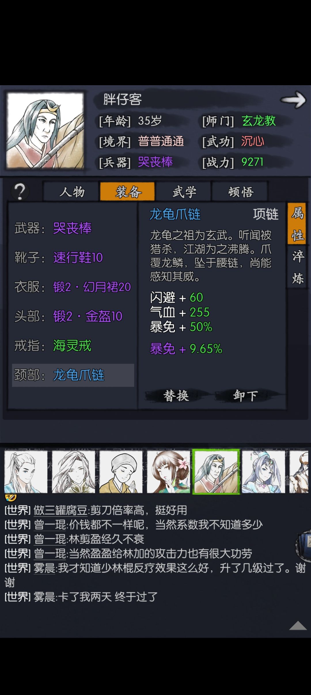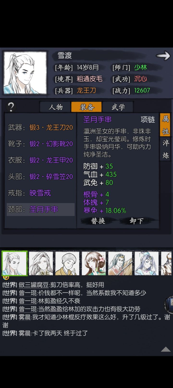 14岁8月,过关配置,少林刀棍主角,小林子2-1 5重,仪瑶1-1+2,海棠2-1,胖仔客1-1+2 闪避拉满,胡旭140级1-2 9重,殷uu随便吃点淘汰的点了技能。重点!胖仔或者海棠配速比小林子快,去破对面免疫。