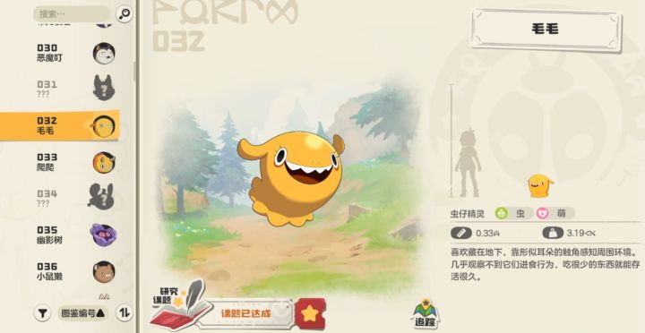 获取方式:该点位概率刷出毛毛。 1阶段进化条件:20级。2阶段进化条件:35级随机进化〈本来的样子/毛毛的样子/幽冥眼的样子/奇丽花的样子〉。