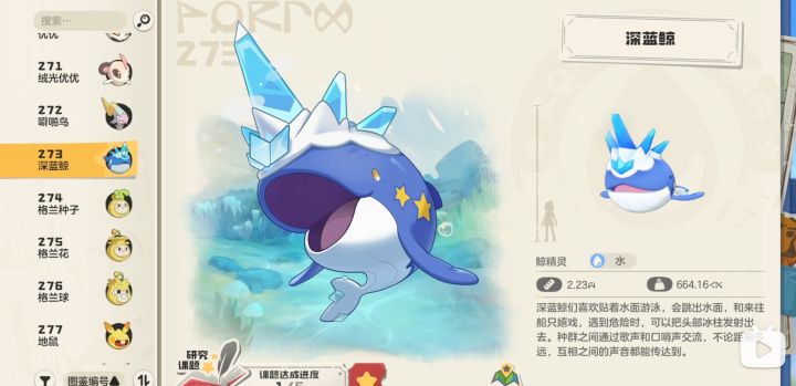 到点位后点击智慧树苗获取深蓝鲸精灵果实,需要洛克里安图鉴100,然后把果实放进眠枭庇护所就能在周围捕捉深蓝鲸。图鉴标号273。