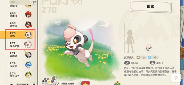 优优36级进化成绒光优优。图鉴标号271-272。