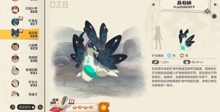 火山琉璃进化条件:矿晶虫40级并攻击3次黑矿。