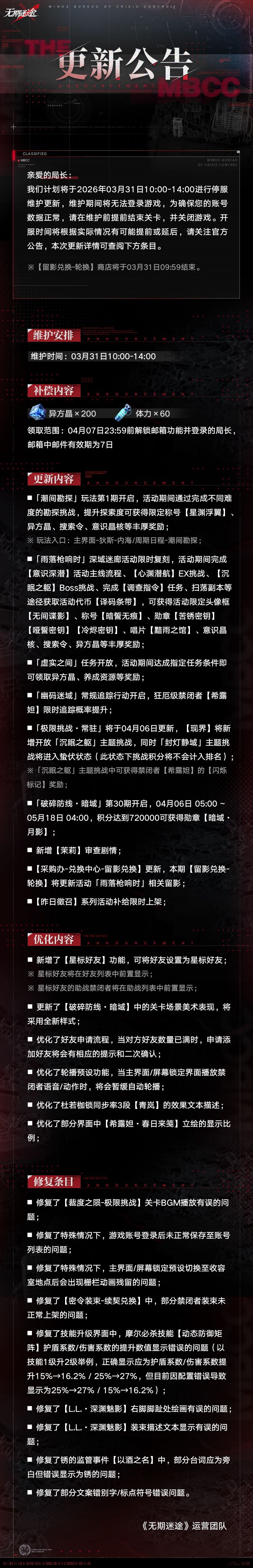 【公告】丨03月31日停服维护更新公告