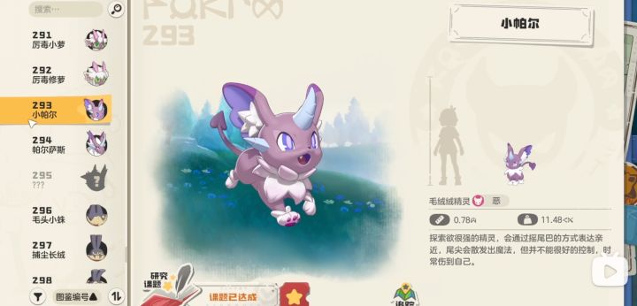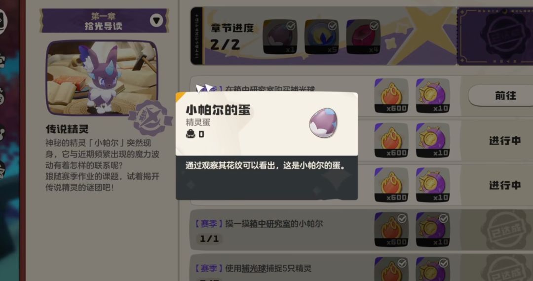 小帕尔28级且精灵星级达到1星后可进化成帕尔萨斯,帕尔萨斯40级且精灵星级达到2星后可进化成龙息帕尔。到点位点击箱子可触发任务。打开魔法师手册,完成第一章任务可获得小帕尔蛋。图鉴编号293-295。