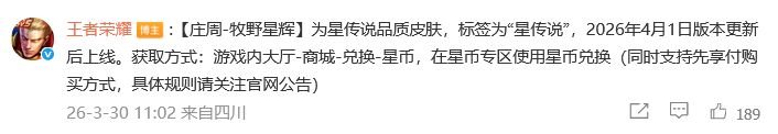 据爆料,庄周即将推出全新星传说皮肤牧野星辉!消息一出引发玩家热议