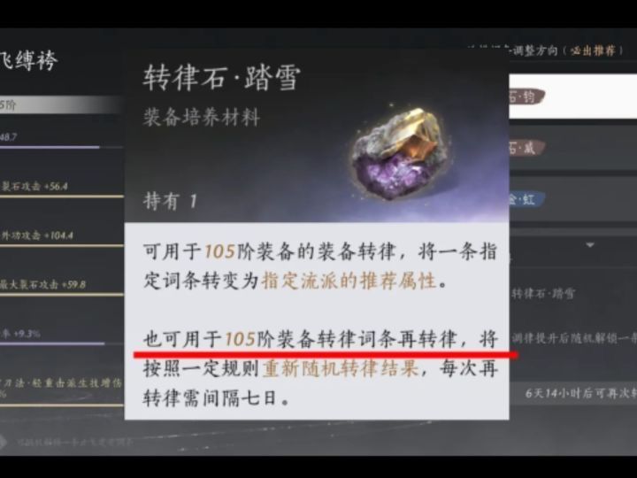 本次优化核心围绕105阶装备展开,新增定音互换与转律修正两大功能,实现“无限转律”机制。定音互换允许同阶同部位装备互换定音词条,避免前期养成资源浪费;转律修正可消耗转律石·踏雪,对转律词条无限次重随,每次间隔7天且自动排除已出词条,彻底告别反复刷装备的“赌运气”模式。同时,官方精简转律库,移除所有小属攻词条,统一各流派有效词条数量,搭配结果预览功能,让养成更清晰高效。