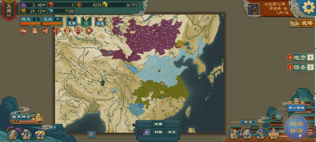 女娲肠:消除治下将发生的地震灾害:30%的概率,我方国君寿命+1:敌方随机1座城邑发生瘟疫灾害