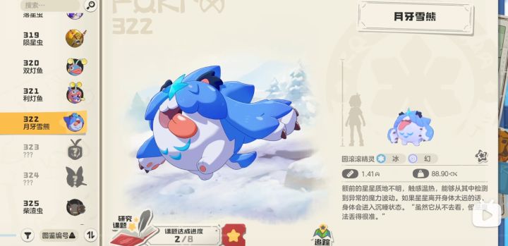 月牙雪熊是赛季奇遇精灵,需要通过连续捕捉精灵后才会出现的特定精灵,且有异色形态。也可以在代币商店购买珍贵奇遇精灵蛋进行兑换。图鉴编号322。