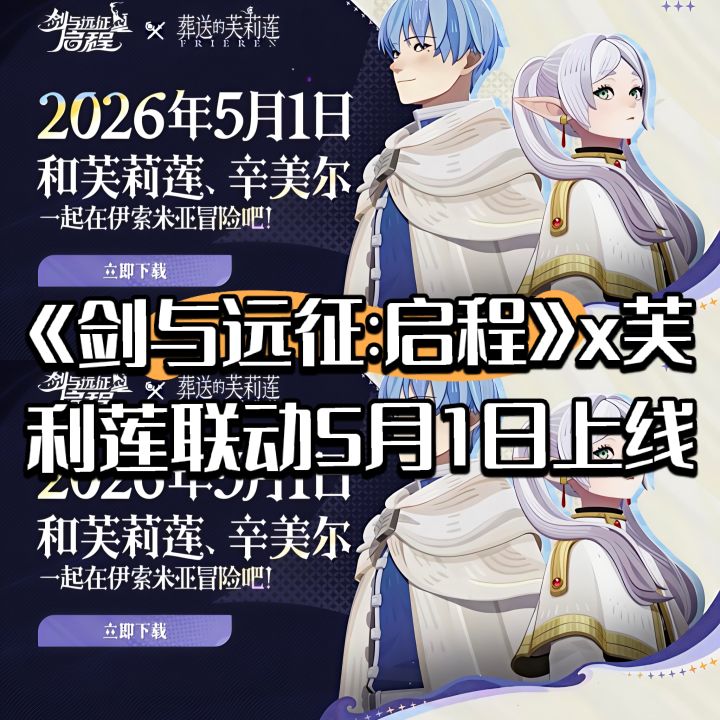 近日,《剑与远征:启程》官方正式宣布与原创动画《葬送的芙莉莲》联动活动已确定于5月1日正式上线,本次联动将迎来两位来自异世界的虚空英雄传说中的魔法使芙莉莲与传说中的勇者辛美尔,他们将作为可获取角色加入玩家的冒险小队官方同步释出了联动宣传视频与角色视觉图,芙莉莲CV为种崎敦美,辛美尔CV为冈本信彦,原汁原味地还原了动画中的经典形象![[TapTap表情|TapFamilyxdoro2_粉狗比心]](https://img-tc.tapimg.com/market/images/101c7e3200596fe8e03765080b467fb8.gif)