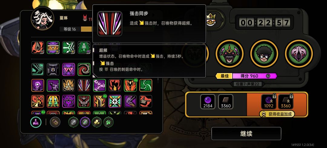 连携炮塔配防御工事就可以开局了,普通品质,出的概率非常大,天赋的强击种子让你根本不用打强击,完美触发强击同步,格挡位的同步指令倒不是必须,毕竟格挡手感不行,而且一直拿绿牙,也不缺攻速,配个强击飞羽,无限大招加炮塔,其他护符有啥拿啥,挑适配的拿