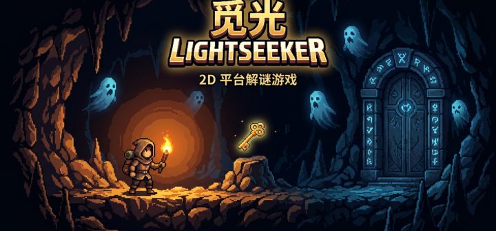 。《觅光》是一款 2D 平台解谜游戏,玩家在黑暗洞穴里靠火把生存,核心玩法是点亮火把、在火把之间穿梭、收集钥匙开门通关。