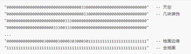 - 一张瓦片地图——哪里是地面、哪里是平台、哪里是空气