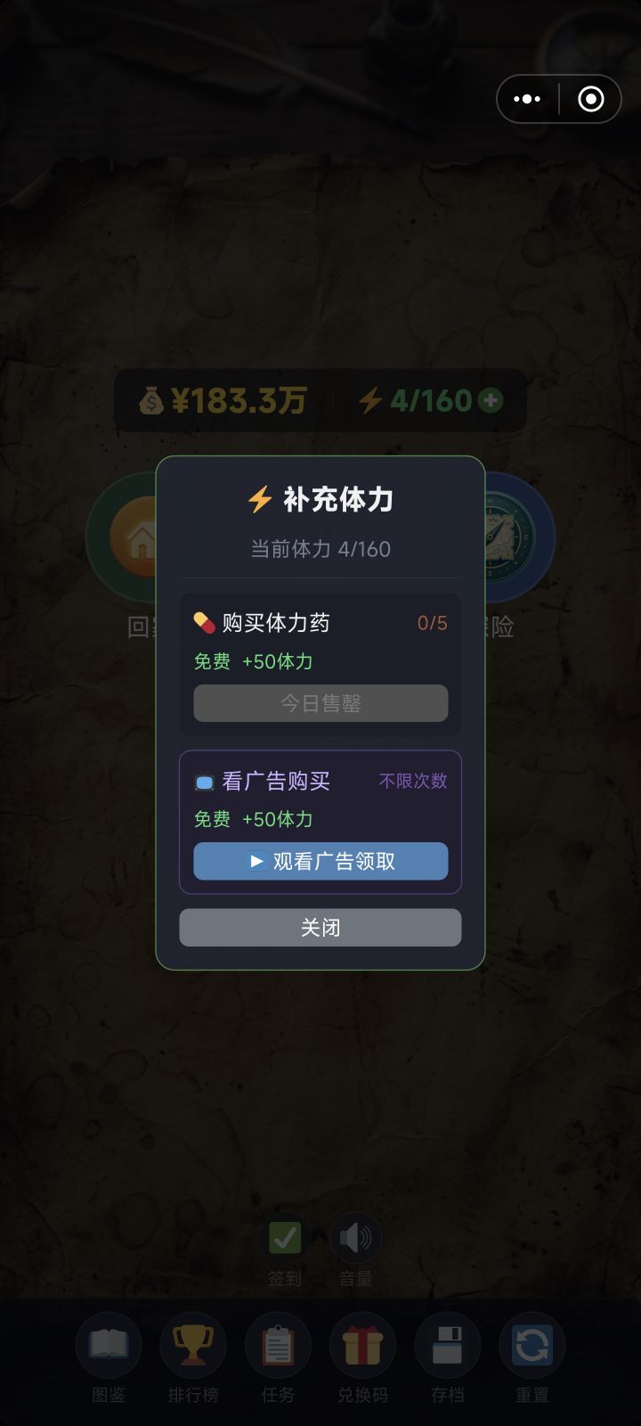 体力实在是太少了玩不过瘾 玩了一晚上看了不下四五十个广告