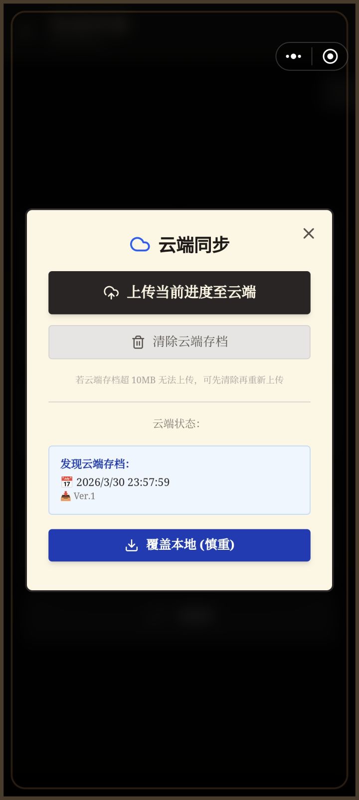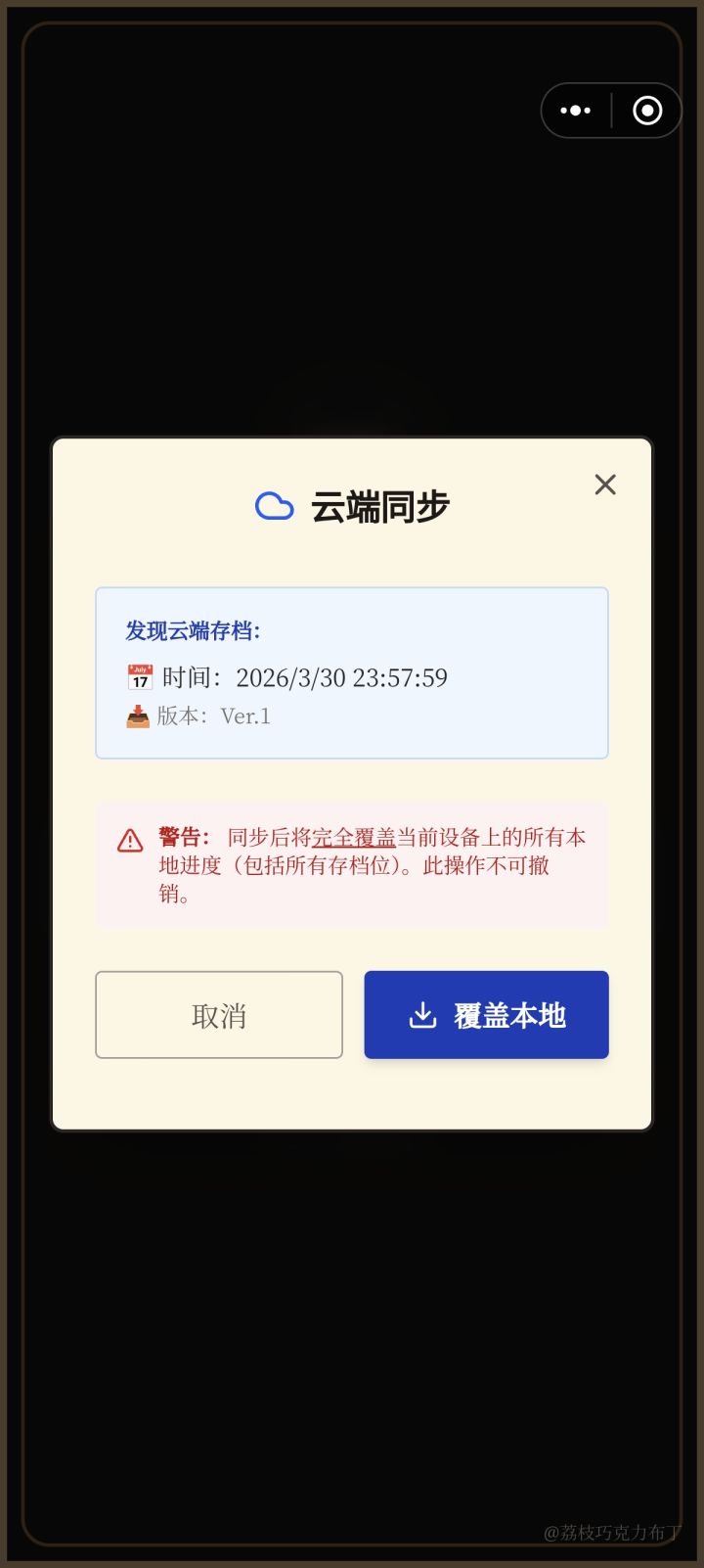 p1p2的覆盖本地都点过了,没有任何变化,还是只有初始档🥲我的三月三十号的云端存档要怎么才能读取啊🥲🥲