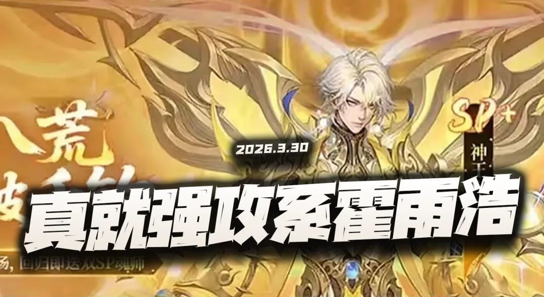 那么这张广告图片上最为吸睛的内容便是......全新的SP+神王霍雨浩即将上线,而且还是个被官方直接冠以T0级强攻系魂师的角色,这点在官方过去的宣传历史上也非常少见,毕竟哪家官方会在一个角色还没上线前就直接给这个角色冠以T0的名号呢,期望越高则失望越大,之前咱们游戏的官方又不是没搞出过效果,例如SP+尘心这个第一位上线的SP+魂师当时就已经当过笑话了......咳咳,回归主题,而这个SP+神王霍雨浩,作为最新的强攻系魂师,官方在这个时间点流出这么个广告图片也是颇为有深意了,因为4月份马上就要到了,而在3月底官方则分别上线了SP王林和SP李慕婉的双返场UP池,且这一波的返场规模对于常规SP魂师返场来说肯定是要盛大了不少,同时考虑到3月初就已经返场了另一位SP魂师,所以SP+霍雨浩在4月中上旬上线的几率也是极高的,甚至很有可能就会在4月上旬直接端上来了。