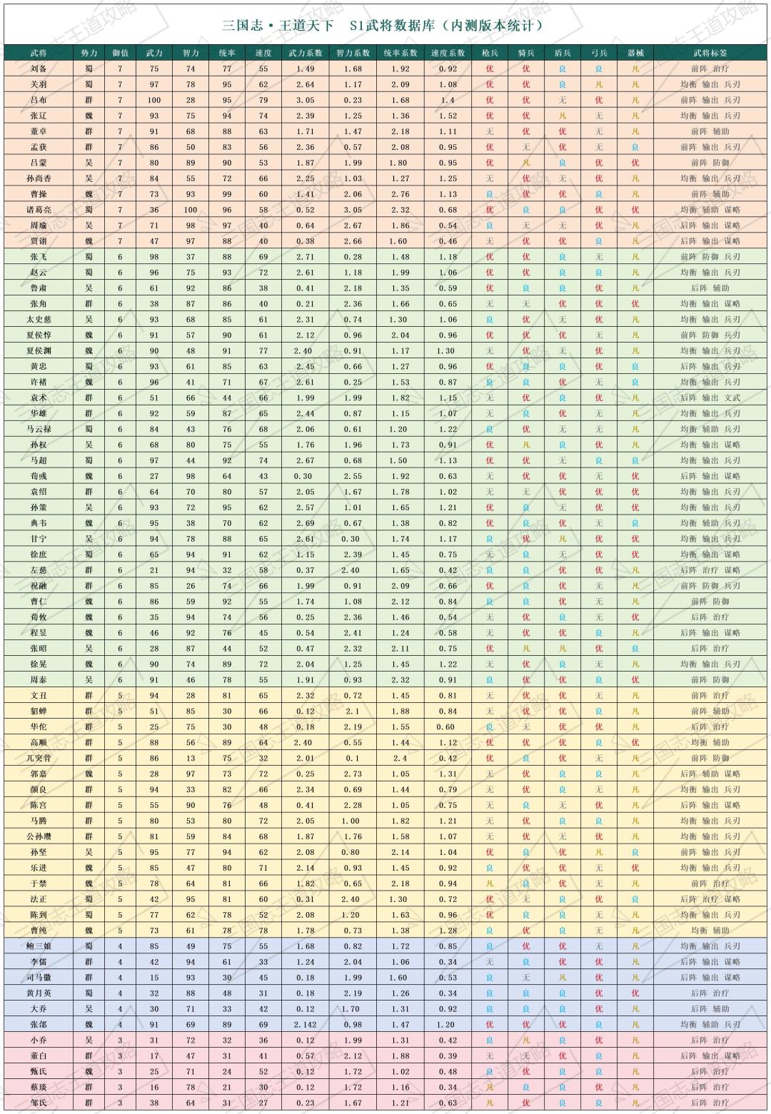 同样是玩三王,这份S1全武将基础档案请注意收好!!!