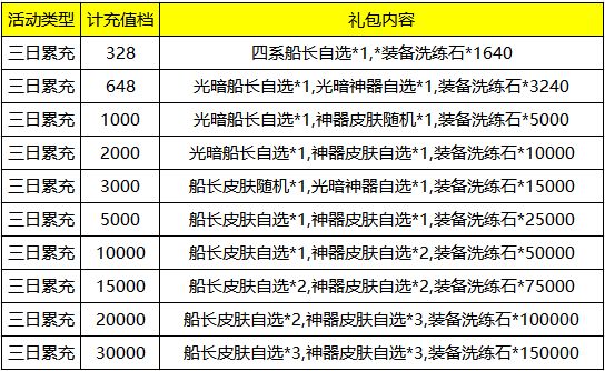 活动期间,到达指定充值档位即可领取活动奖励