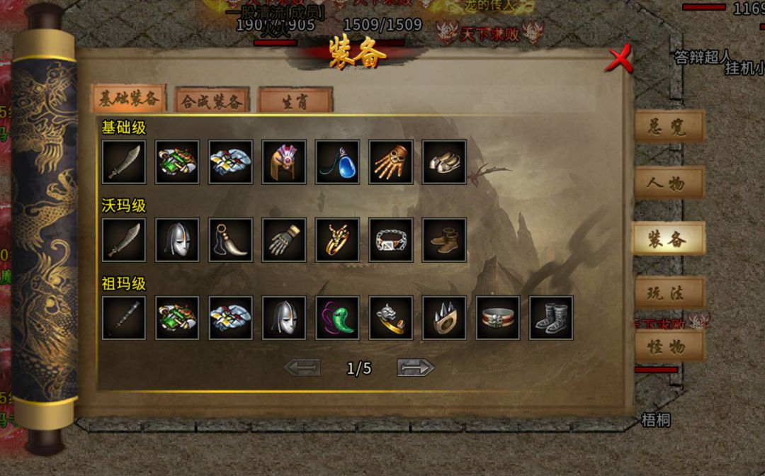 2. 中阶装备:祖玛寺庙、牛魔寺庙、火龙魔窟,小怪+精英怪掉落祖玛、赤月套,日常挂机即可积累。