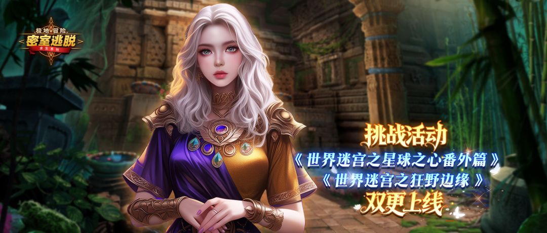 本次更新,我们带来极地冒险挑战活动特别章节《世界迷宫之星球之心番外篇》、《世界迷宫之狂野边缘》。奥利维亚和西蒙在勘探冰川时遭遇地质异变,坠入布满晶体的地下空间。西蒙必须尽快找到失散的同伴,在这紧要关头,人类却遭到了地下原住民的驱赶。与此同时,在热带丛林深处,庇护人类公主的象族部落因资源短缺与虎族产生摩擦,双方冲突随时可能升级,两个面临着生存与信任的双重考验的世界急需你的帮助。