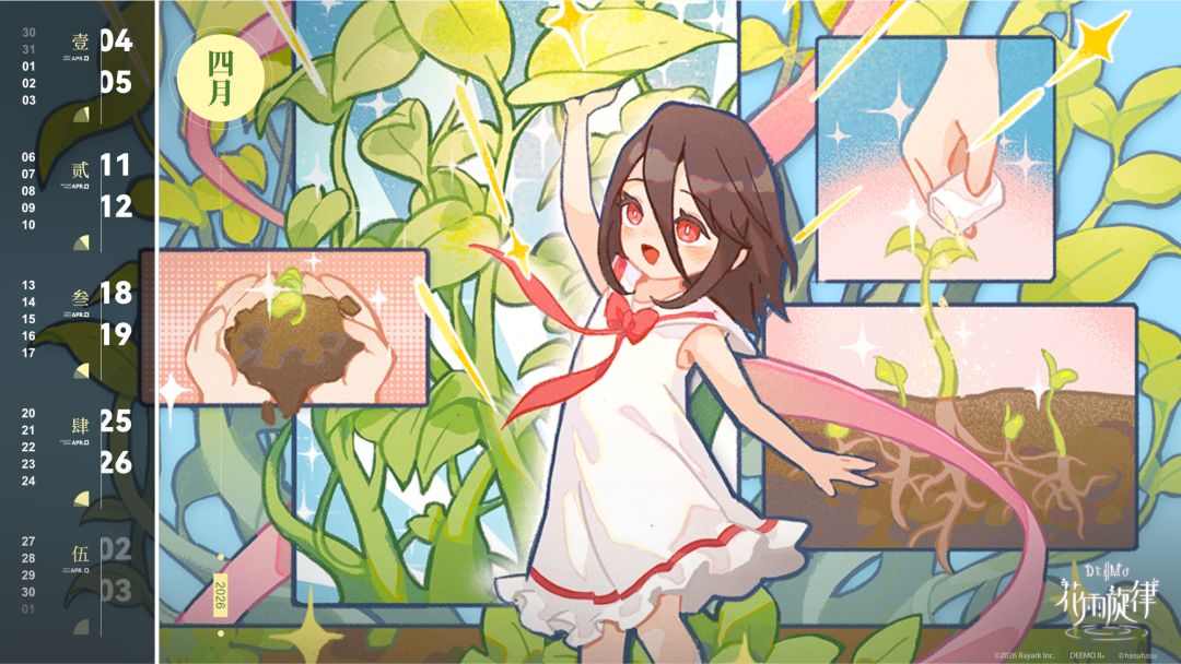 《花雨旋律》2026 年 4 月月历壁纸已送达,请查收📩