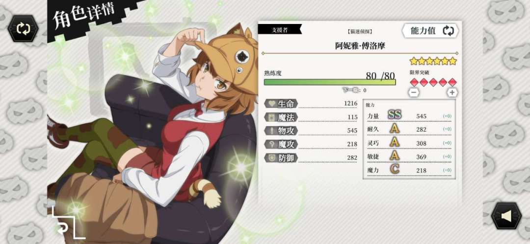 满破属性也是SS力量加成,效果是降低敌方15%的物理抗性与10%的防御力,综合表现优于猫咪侦探。