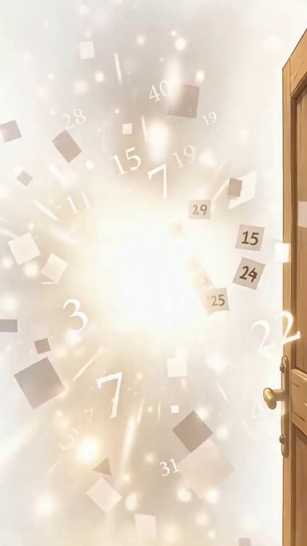 提示词:木门缓缓向内打开,门缝中涌出温暖的白色光芒,光芒逐渐充满整个画面,