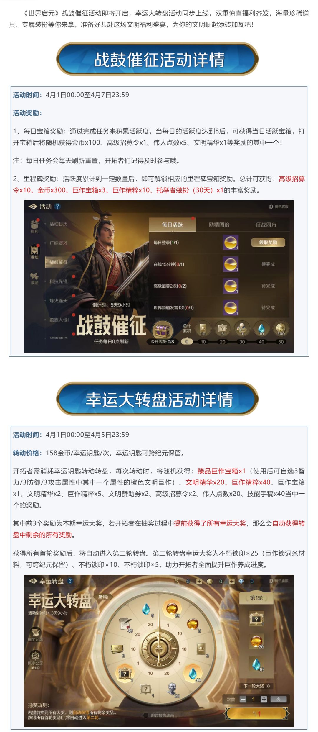 新活动资讯丨战鼓催征活动即将开启,巨作转盘活动同步上线