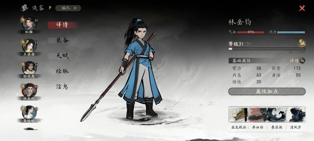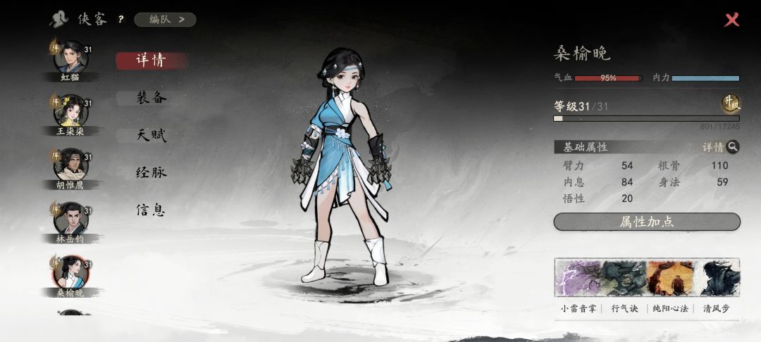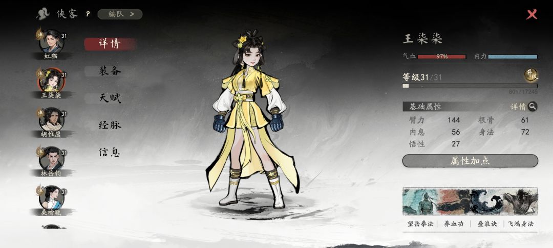 经脉加成很大,我没点经脉前打不过,点了就打过了,核心就是三盾加两输出,碧波加望岳是MVP