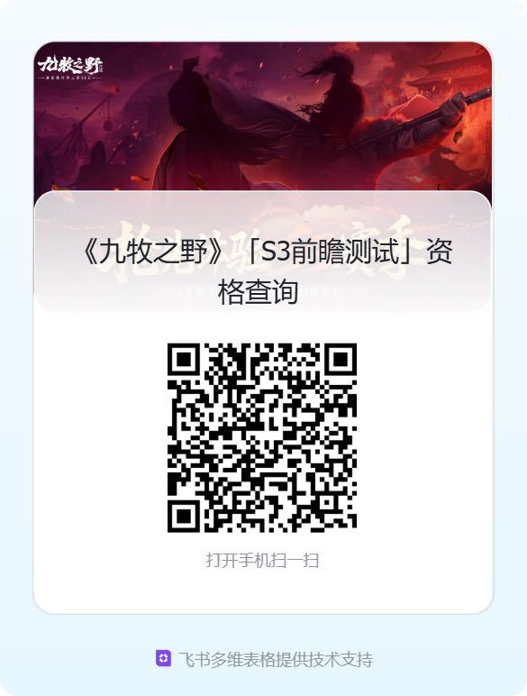 《九牧之野》「S3前瞻测试」报名现已结束,你可以通过下方查询入口及游戏内邮件查看是否获得测试资格。