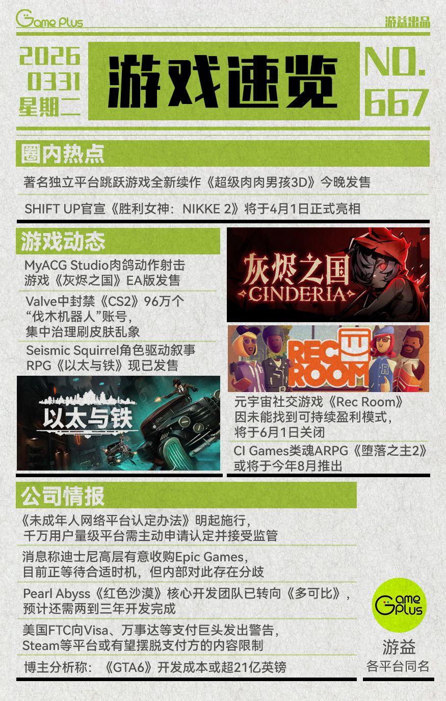 游戏行业值得关注的信息-0331