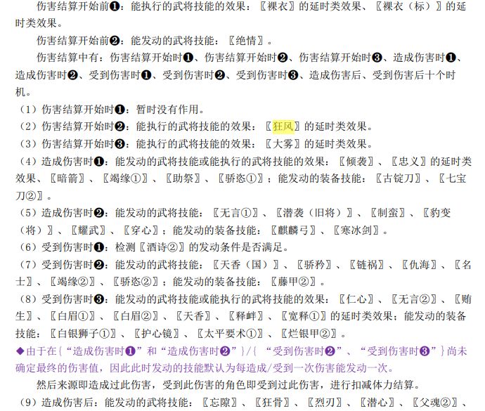 在伤害结算中,时点按以下次序排序: