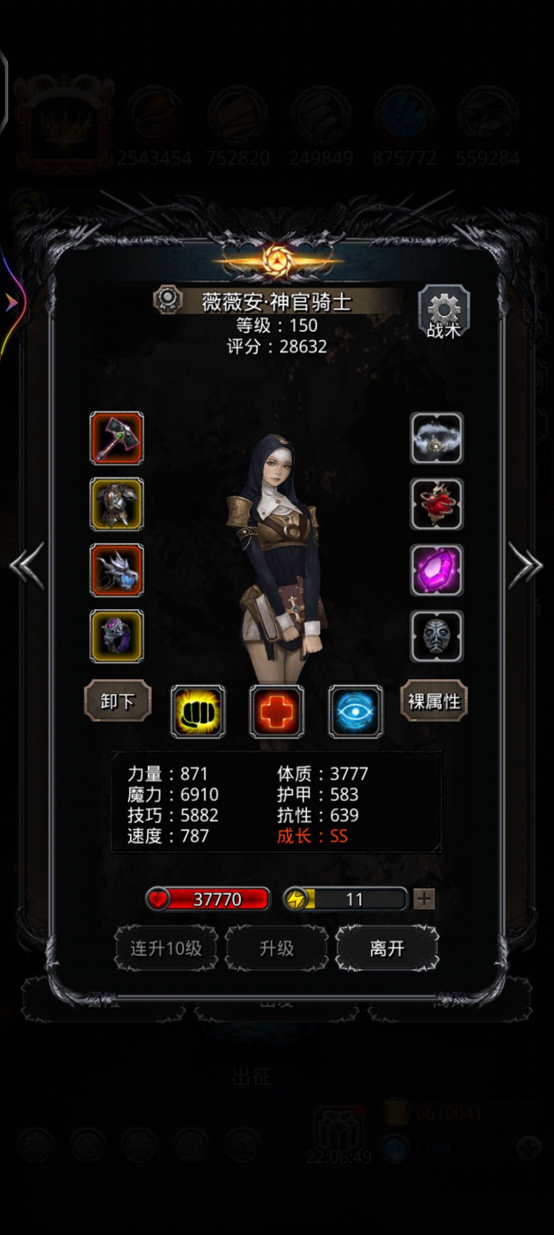 神官没有技先发,圣龙不是护甲过高就是过低,无限制治疗体技水环也换不出来,搞的二人环,没办法,始终差20万伤害,于是就去刷铁甲片,事实证明体5护甲5体这种垃圾战利品也是有它的用处的,588护甲6万血也能抗住,高技巧战利品也刷不出来,全身没有一个10以上的,圣枪神官也是刚及格,如果等技先发的话我还要等三个多月