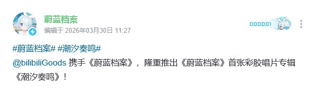 官方宣布将于4月2日18时开启首张彩胶唱片专辑潮汐奏鸣的预售