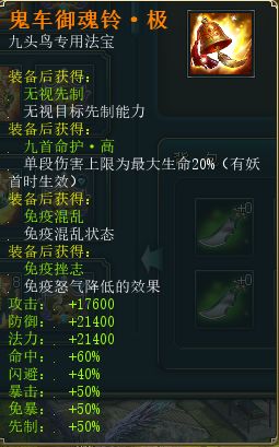 奖励:九头鸟专属法宝-鬼车御魂铃