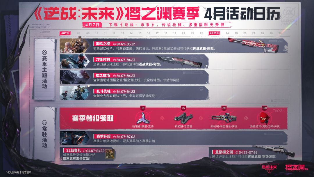 《逆战:未来》S2新赛季「樱之渊」4月福利活动抢先看:新赛季主题活动上线,全新传说武器、S2备战好礼等多重福利免费得!
