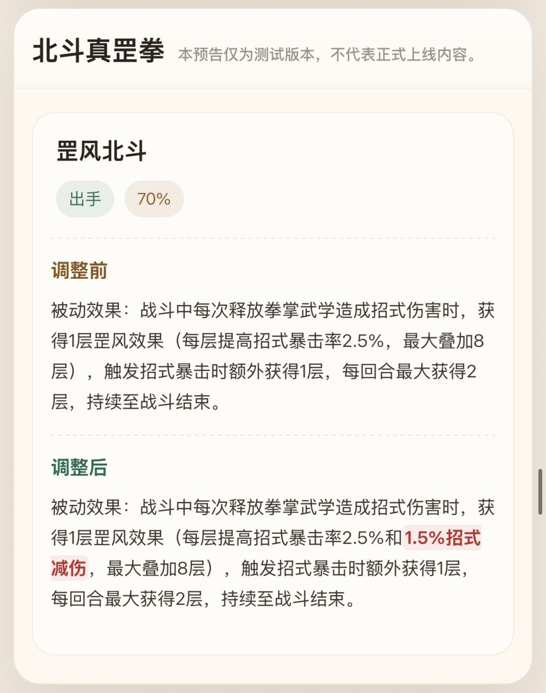被动效果:罡风效果额外增加1.5%招式减伤(字数受限详见图)