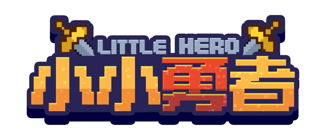 因此,我们大胆的改变了原本小小勇者LOGO全部的设计,统一协调为像素风格,以小小勇者四个字为主体,上方斜插两把勇者剑,体现出故事感。
