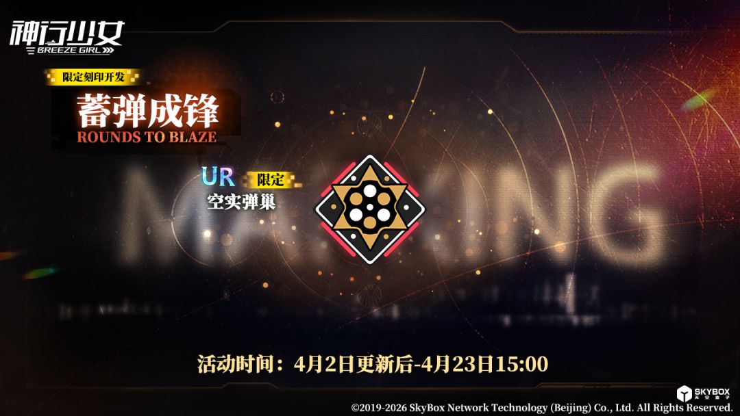 活动说明:活动期间,限定刻印开发【蓄弹成锋】开启。该开发补给中以下刻印套装UR出现率提升: