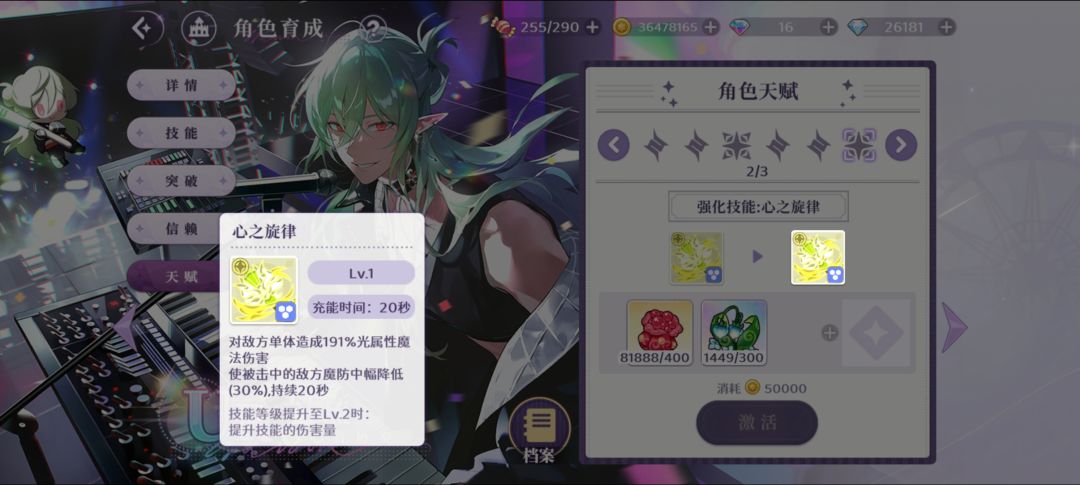 二技能:单体光魔法伤害 + 中幅降魔防15s