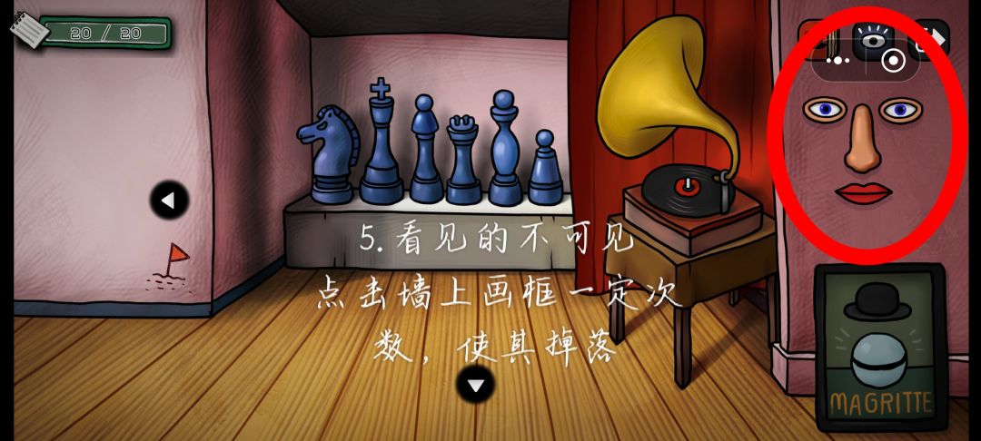 点击唱片机旁边的墙上画框一定次数,使其掉落