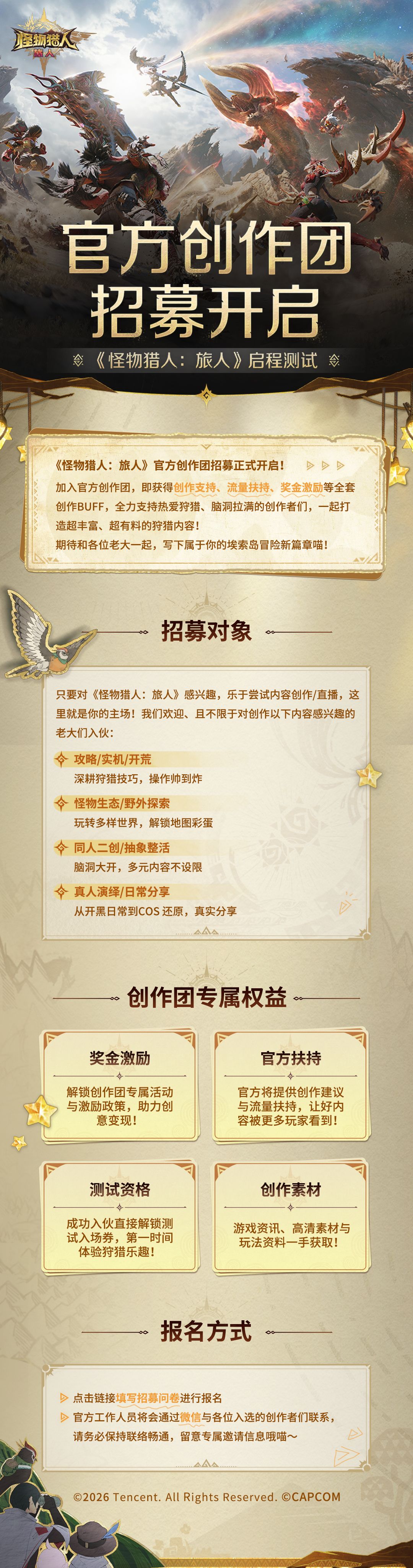 《怪物猎人:旅人》官方创作团招募正式开启!