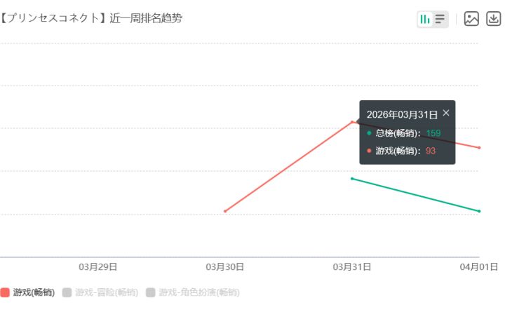据了解,日服3月31日上线了兔女郎格蕾丝及同期剧情活动,游戏在苹果畅销榜排名出现明显起色