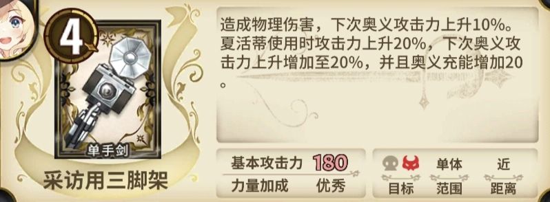辅助书士方面,风书娜塔莉、电书尤拉莉亚、狐狸辛西娅等都能比较好地辅助记者夏洛蒂。风书提供高移动力和力量以及伤害增幅。电书保护记者不受伤害,以便于随着时刻增长拥有更高的伤害。狐狸的八卦阵对记者的力量和智力均有加成,记者在八卦阵内无论是主动输出还是大招喷火阶段都能受益。SR的书士充电宝雅丽娅能助力记者夏洛蒂更快开大,如果这些辅助都没有,系统白送的万金油辅助美食家塔尼亚其实也能辅助记者夏洛蒂。