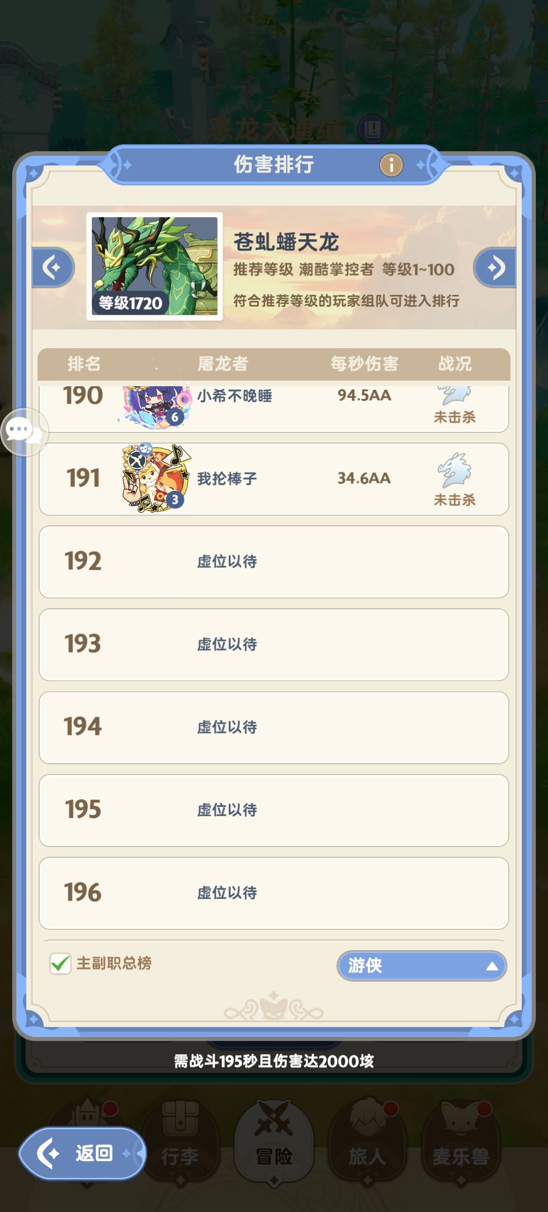 游侠:105人(副职191人)