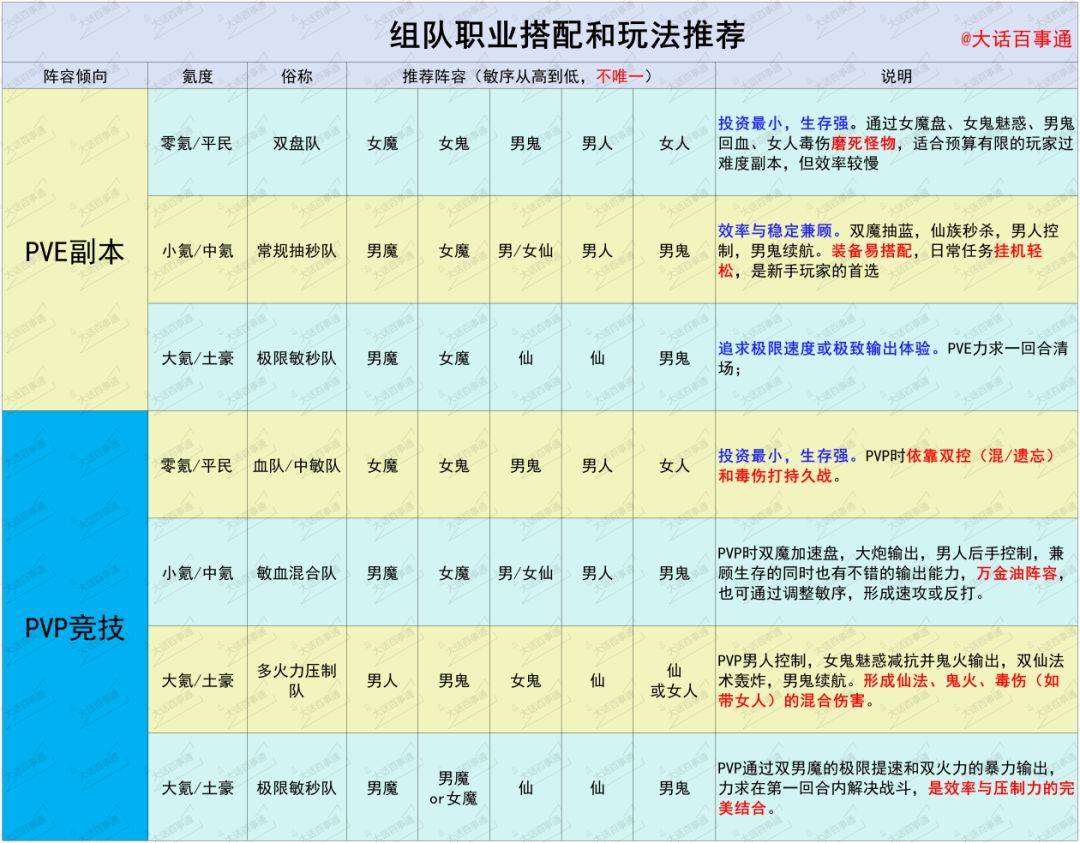 双魔负责加速和抽蓝,仙族进行秒杀,男人实施战场控制,男鬼保障队伍续航。